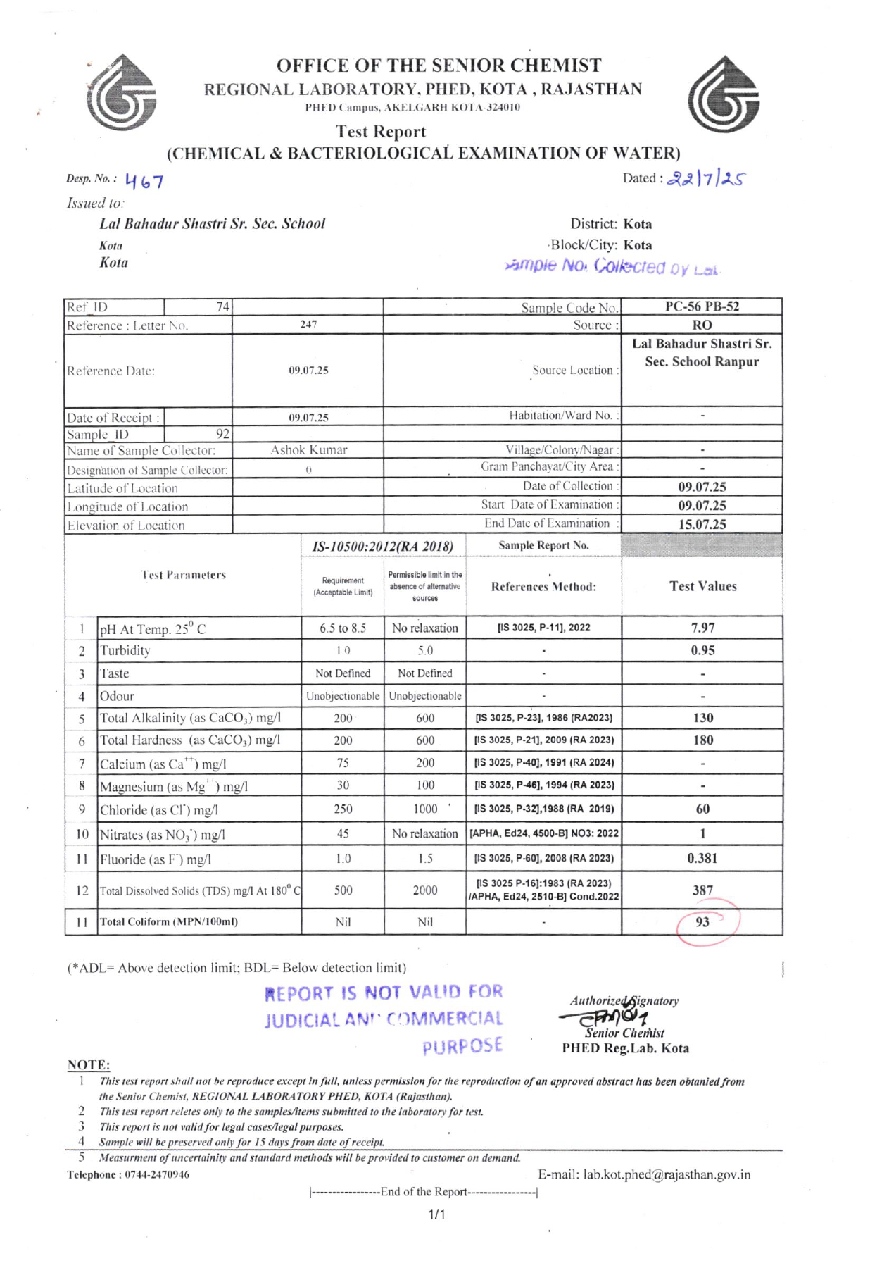 Water Testing Report